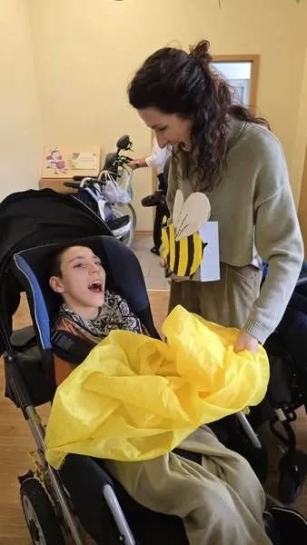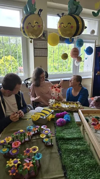 Świetlica rewalidacyjno-wychowawcza zmieniła się dziś w kolorową łąkę W ramach projektu edukacyjnego SENSOSMYKI przeprowadziliśmy trening dłoni sadzenie kwiatów wzmacniało sprawności naszych dłoni i palców,w piasku szukaliśmy małych owadów, odkrywając ich właściwości sensoryczne,zbieraliśmy delikatny pyłek z kwiatów, trenując chwyt i koordynację oko-ręka,nie zabrakło też, słodkiej zabawy w lanie miodu z domku pszczoły, dzięki niej ćwiczyliśmy siłę pracy dłoni.