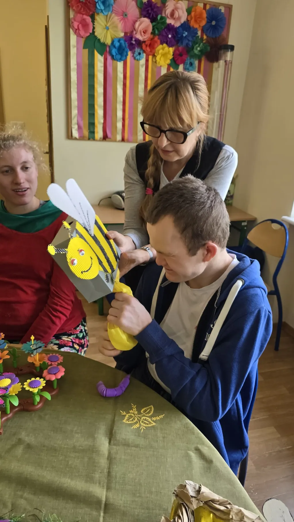 Świetlica rewalidacyjno-wychowawcza zmieniła się dziś w kolorową łąkę 🦋🐛🐞☘️ W ramach projektu edukacyjnego SENSOSMYKI przeprowadziliśmy trening dłoni 👌🤏🖐️